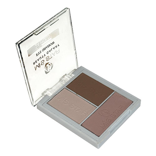سایه چشم میس استار دارای سه رنگ مختلف در هر پالت می باشد. سایه چشم میس استار با مواد مرغوب و با کیفیت توسط برند ایرانی میس استار تولید و عرضه می شود. مواد تشکیل دهنده طبیعی و بدون اسانس این محصول آرایشی باعث ایجاد بافتی یک دست با پوشش دهی مناسب به پلک ها می شود. سایه چشم میس استار حاوی مواد مرطوب کننده می باشد که باعث محافظ و حفظ رطوبت پلک ها می شود و مانع از خشکی و آسیب دیدن بافت پلک ها می شود.سایه چشم میس استار در رنگ بندی های مات و براق موجود است و با ایجاد بافتی نرم و یک دست بر روی پلک ها به بازی رنگ و نور در چشم ها کمک می کند و جلوه ای خاص و در عین حال طبیعی به چشم ها می بخشد.